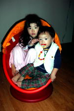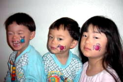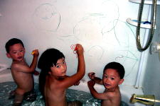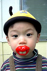 シャボン玉はすぐに割れてしまう物だけど、これはくっ付くタイプの物。 以前、日本のテレビで見たけど、普通のシャボン玉に砂糖を入れると、水 あめの様になって割れないシャボン玉ができるらしい。おためしあれ。 |