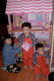 | これもクリスマスプレゼントにもらった物。 アメリカのドールハウスはでかい。 レベッカがもう少し大きくなったら一緒に手作りで作ろうかとも思ったが、せっかく頂いた物なので大切に使っています。 |