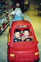 アメリカのスーパーはでかい。だからカートもでかい。でかいだけでなく子供