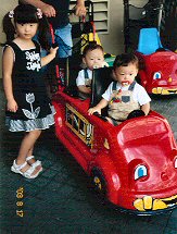 私が小さい時コインを入れて乗る乗り物が大好きでよく両親に乗せてもらっていたから、私も子供達をよく乗せるようにしています。
