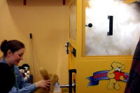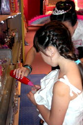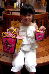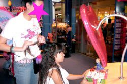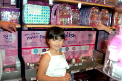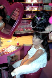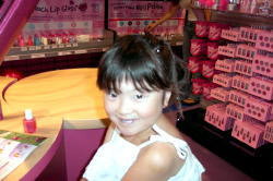 この店は、ワシントン州では初めてのオープンとなる、子供向けのおしゃれショップです。背中に羽を付け、頭にティアラを付けた店員さんに迎えられ、中に入ると女の子が喜ぶグッツが所狭しと並んでいます。 面白いのは、自分のオリジナルブレンドで、口紅やマニキュア・パフューム・ボディソープやシャンプーなどを作れる事です。この日のレベッカは、マニキュアを作ってみました。『ラメをもっと入れて』とか『この色もブレンドしたい』と注文。最後に思いっきりシェイクして出来上がり。かわいい箱に入れてもらえます。 そして、無料でやってもらえるヘアーメイクにもトライ。ウィッグを付けて化粧品などとセットなってる有料コースもありました。 店内に設置されている専用PCで会員登録すると、メンバーシップのみ毎週火曜日に10%割引になる特典が付いています。又、スタンプカードが20個たまると20ドルの買い物が出来るし、毎月一回パスワードを言うとちょっとしたプレゼントがもらえます。(パスワードは会員カード入れに書いてある) その他、店内でバースデー・パーティも出来るので、おしゃれ好きの女の子のお友達が多い子にお勧めです。 このClub Libby Lu は、おばさんの私でも楽しいお店でした。