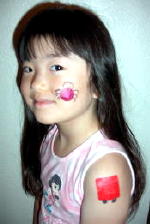 これはけがをした時に貼るバンドエイドですが、専用のペンが付いていて、バンドエイドを元にして絵が描ける物です。 例えば、丸いバンドエイドは、丸を胴体にして虫や鳥を描いたり、四角のバンドエイドは車や電車に見立てたり、とにかくいろんな発想でいろいろ描けるので楽しいです。