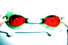これは、水泳用のゴーグル。 ちょっと写真だと分かりにくいが、ワニの目になってます。 この他にも、シャークやピラニア等もありました。 |