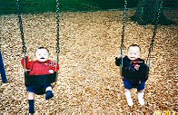 アメリカの公園の多くは、木くずが地面に敷き詰められています。これは、クッション効果の安全の為なのでしょうが、子供が転んで目に刺さったら嫌だなぁ...と日頃思っている私です。 ところで、アパートに住んでいた頃は、近所の公園も多く、子供もたくさん遊んでいましたが、今住んでいる所はアパートが少なくて一軒家ばかりのせいか、子供のいる家のほとんどが、自宅が公園の様に広く、遊戯がたくさんあります。そのせいか、公園で遊んでいる人は少ないです。 公園に行くと、日本の様に母親達がつるんで話し込んだりしていません。ほとんどの親が子供(大きい子供でも)と一緒に遊んだり、子供から目を離す事がありません。また、平日の昼間でも休日でも、父親に連れられて来る子供も多いです。 あと、アメリカでは子供用のブランコでも、幼児用の落ちないタイプがあるので、まだ小さい家の双子に便利です。 |