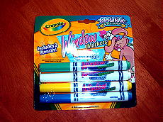 そんなに珍しい物ではないけど、子供用のチョークとガラス窓用のペンです。
