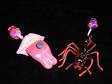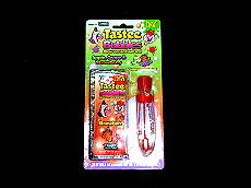 アメリカで売っている、子供用の変なお菓子をご紹介します。 @は食べられるシャボン玉。シャボン玉をフッ−っと作ったらバクッっと食べちゃう。 Aは気持悪い取っ手付き飴。 Bはボタンキャンディ。