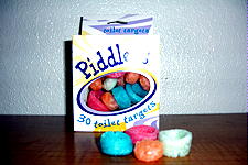 これは、トイレトレーニングに使用する物です。 どちらかというと、立って用をたす男の子用でしょうね。 便器にこれを置き、それに向かっておしっこをかけます。 おしっこをかけると溶けるし、もし残ってもその後水に溶けるので、トイレが詰まる心配はありません。 |
