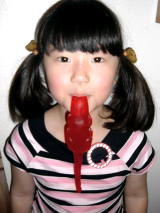 3歳になった双子は、今は普通の飴をなめる事が出来ますが、まだ小さい時は『飴が喉につまるのでは?』と心配でした。 そんな小さい子供にも安心なのど飴を発見! 棒付きなので、のどに詰まる心配がありません。 レベッカ曰く、味はイマイチだそうです。 |