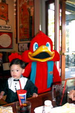 『レッドロビン』というファーストフードがある。ハンバーガーをメインに、サラダやチキンもあるし、特大のオニオンリングは一見の価値あり。ドリンクはもちろんフライドポテト(アメリカではフレンチフライと言う)もお替わり自由がうれしい。 キッズメニューもあるし、フウセンももらえるし、時々着ぐるみが席まで遊びに来るし、お面やクレヨンもあるので子供も大喜び。 誕生日にはミニケーキがサービスされて、店員が皆で歌を歌ってくれます。 |